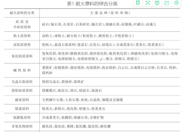耐火原料的種類繁多。按原料的生成方式可分為天然原料與人工合成原料兩大類,天然礦物原料仍然是耐火原料的主體。