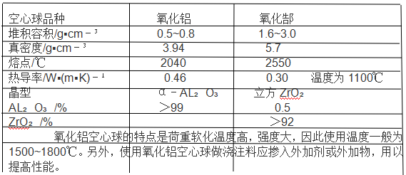 -人造空心球有多種,例如氧化鋁,氧化鋯,莫來石質(zhì),鋁鎂質(zhì),鎂鉻質(zhì)等等,通常使用最多的是氧化鋁空心球。下面通過一個表格列舉兩種材質(zhì)空心球的主要性能,先簡單的看一下: